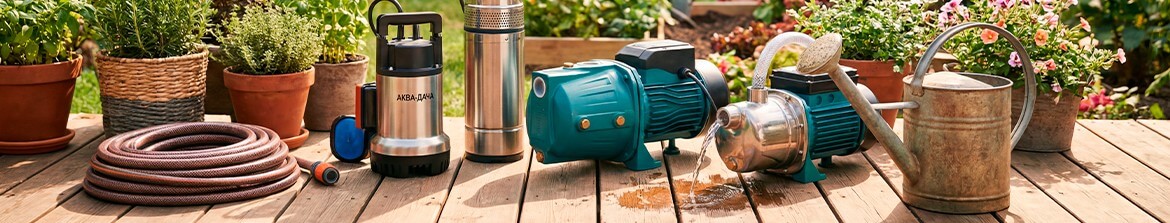 - Широкий ассортимент — более 500 моделей: погружные, поверхностные, циркуляционные, дренажные и скважинные насосы разной мощности.
